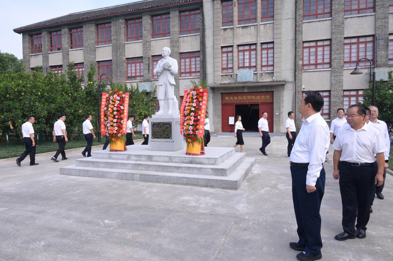 在杂交水稻发源地展览馆广场前,大家怀着崇高的敬意向袁隆平院士雕像敬献花篮,向雕像鞠躬,致敬袁隆平院士为我国粮食安全、农业科技创新、世界粮食发展作出的重大贡献。随后在讲解员的带领下,依次参观了展览馆各个展区。最后,全体人员共同参观了安江镇大畲坪杂交水稻发源地博物馆、乡村振兴示范村安江镇下坪村。