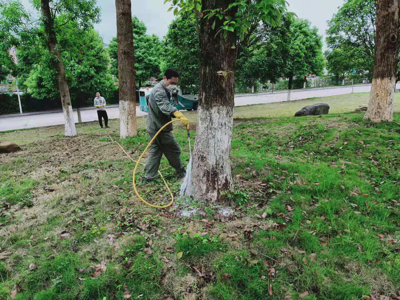 白蚁防治所的工作人员仔细对校园绿化树木及土壤进行了检查,对校内60多株被白蚁危害的绿化树木进行了白蚁消杀服务。
