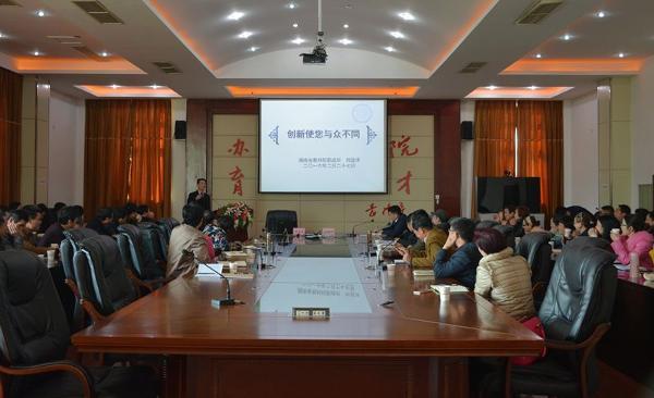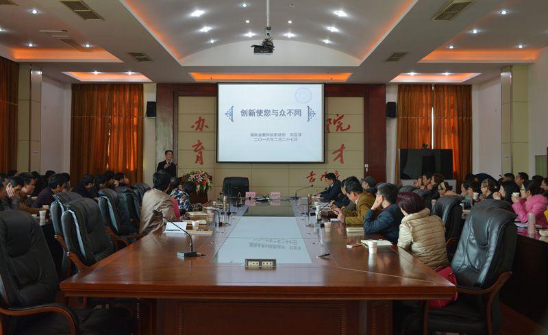 227日上午在多功能厅,我院邀请湖南省教科院职成所所长刘显泽给全体院领导和中层干部讲了一堂题为“创新使您与众不同”的讲座。