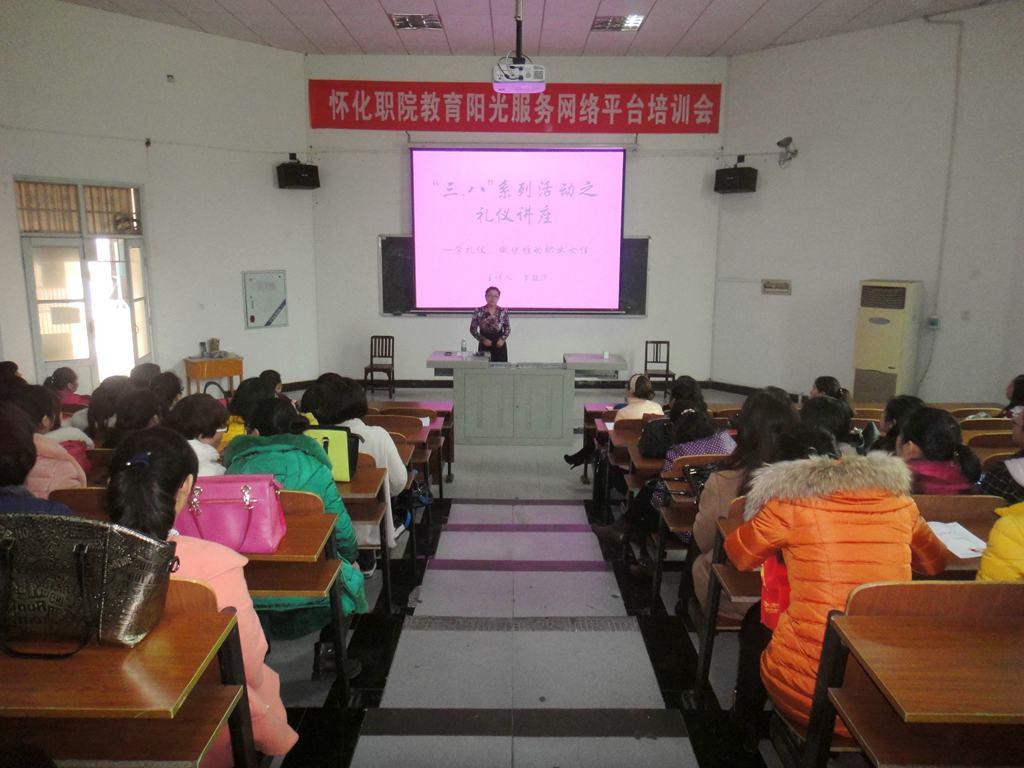 3月11日下午2点,主题为“学礼仪,做优雅的职业女性”的讲座在图书馆学术报告厅举行。罗毅华副教授为主讲,以演示、互动的方式介绍了职业生活和家庭生活中的女性礼仪等知识。演讲过程中老师们情绪高涨,欢笑不断。