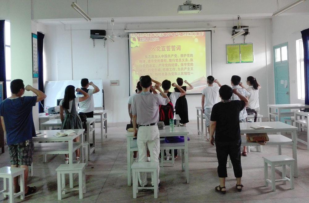 我志愿加入中国共产党,拥护党的纲领,遵守党的章程,履行党员义务。为继承和发扬党的优良传统,进一步增强教职工的党性意识、坚定共产主义信念,结合两学一做学习教育活动,2016620下午,怀化职业技术学院电子电气工程系党支部组织全体党员举行了庆七一重温入党誓词活动。