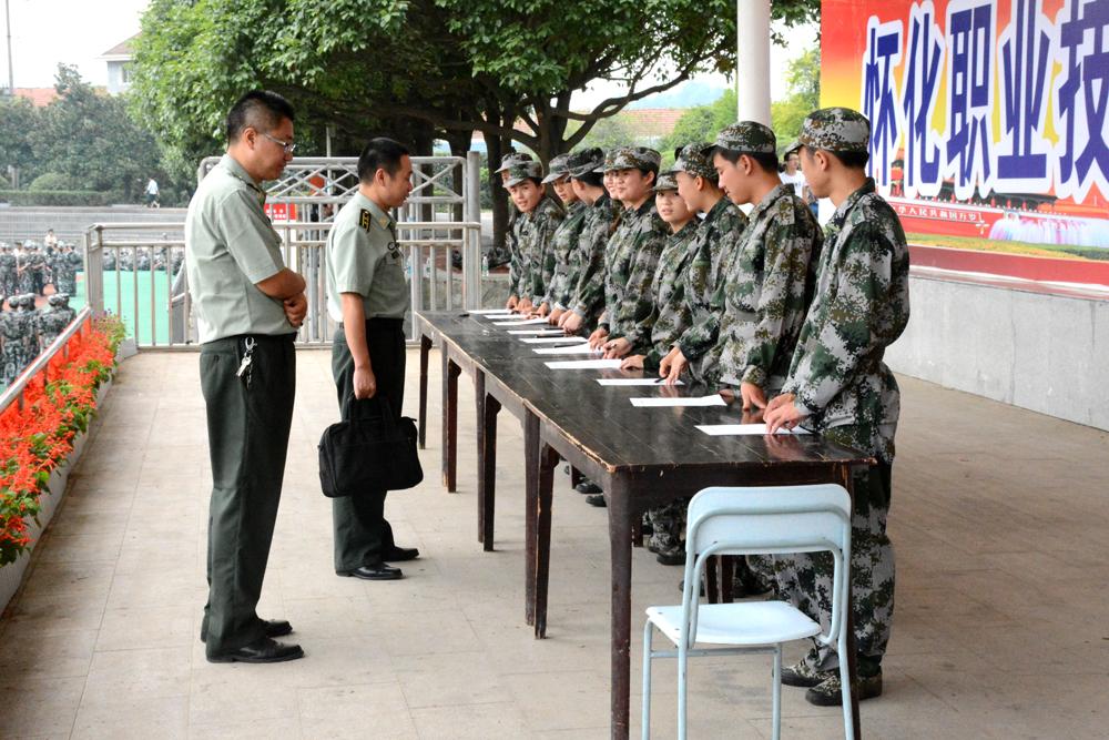 9月13日上午,军训如火如荼进行之际,怀化军分区参谋长卢涛、省军区教导大队政委吴翔、省军区司令部作训处参谋汤光强等一行来到我院,对我院军训工作进行督促检查。