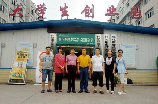 5月31日,市科技局王勇副局长一行来到院,在院长助理匡晓东的陪同下,参观了怀化职院大学生创业园,考察了学创新创业情况和创客空间项目申报情况。
